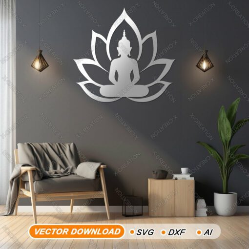 Buddha Lotus Wandkunst | Laser Cut Datei | SVG & DXF Download