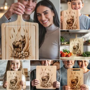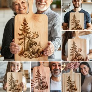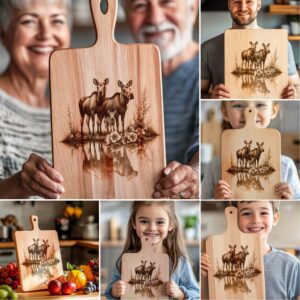 Veredeln Sie Ihren Küchenstil mit unserem Charcuterie Board Laser Gravur Bundle, das exklusive Elchfamilie-Designs bietet. Dieses Set aus sechs rustikalen Wildtierkunst-Dateien verwandelt jedes Holzbrett in ein atemberaubendes Dekorationsstück.