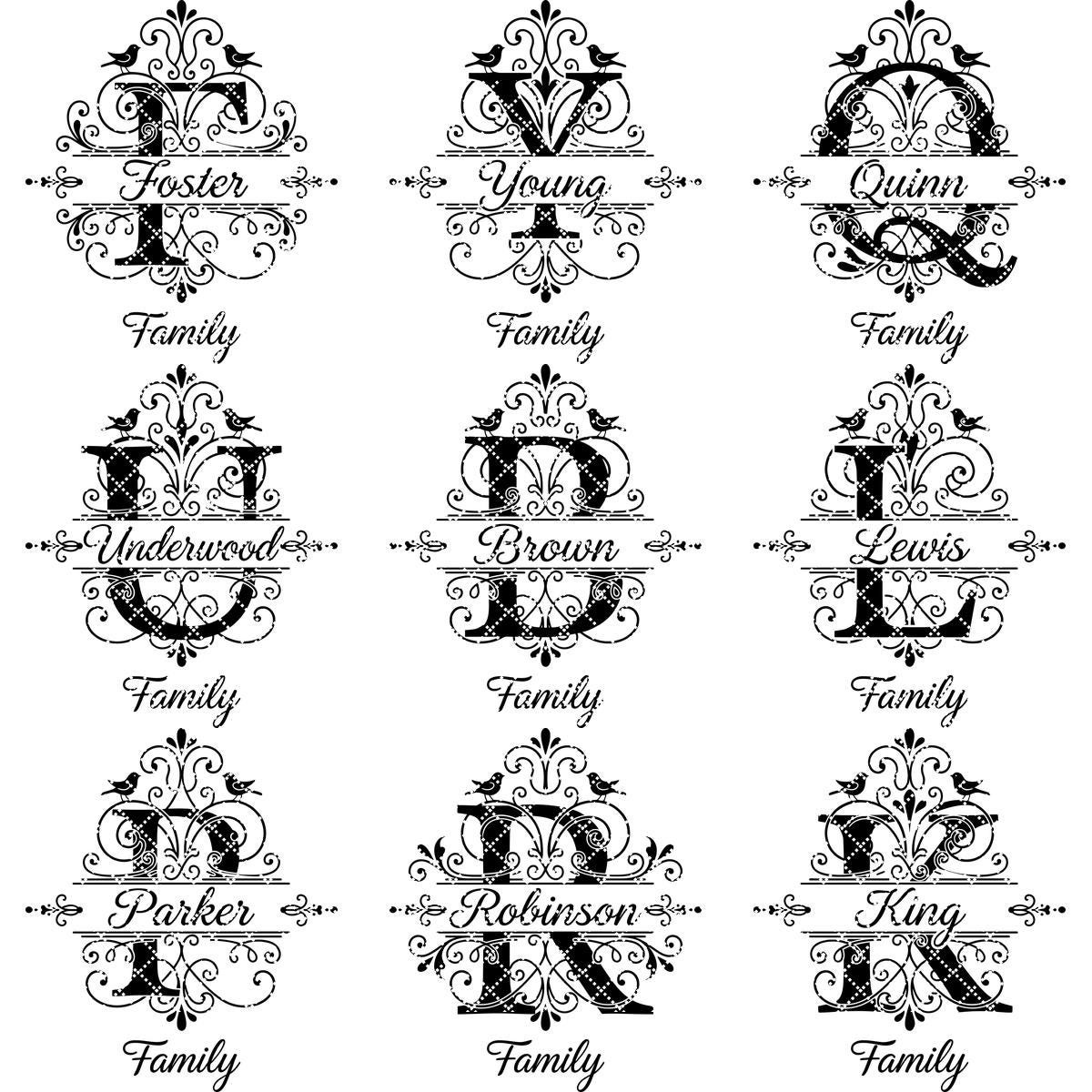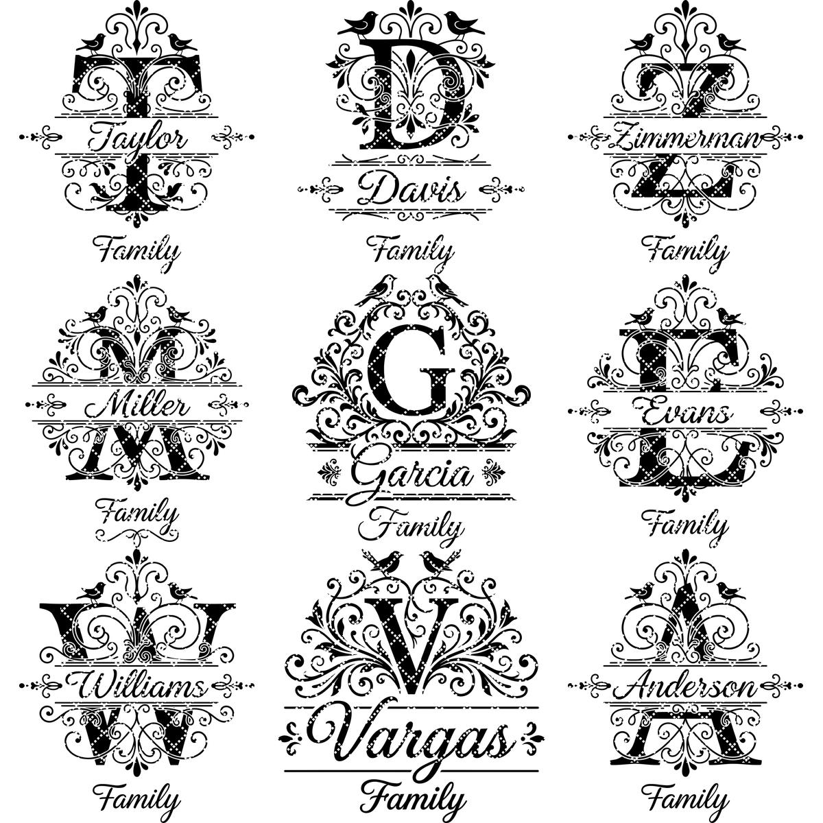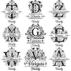 Veredeln Sie Ihre Geschenke und Heimdekoration mit unserem Familienwappen-Monogramm-Bundle, das eine persönliche und edle Note verleiht. Jedes Emblem verfügt über detailreiche Alphabet-Designs, die sich perfekt zur individuellen Gestaltung einer Vielzahl von Artikeln eignen.