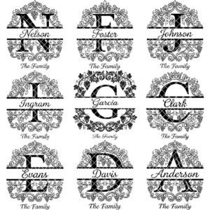 Zelebrieren Sie Ihr Familienerbe mit unserem exquisiten Familienwappen-Monogramm-Paket. Jedes Design zeigt ein atemberaubendes Weinrebenmotiv, elegant gefertigt, um Ihre Initiale im zeitlosen Stil zu präsentieren. Diese Dateien eignen sich perfekt zum Erstellen unvergesslicher, personalisierter Geschenke, die jeden Anlass zu etwas ganz Besonderem machen.