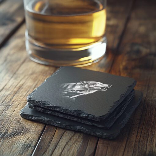 Verwandeln Sie Ihre DIY-Kreationen mit unserer Lasergravur-Datei für Schieferuntersetzer, die ein exklusives Doppelbelichtungs-Wolf- und Mond-Design zeigt. Diese markante Tierkunst hebt jedes Projekt sofort auf, wodurch Ihre Untersetzer mit atemberaubender Detailgenauigkeit und Originalität hervorstechen.