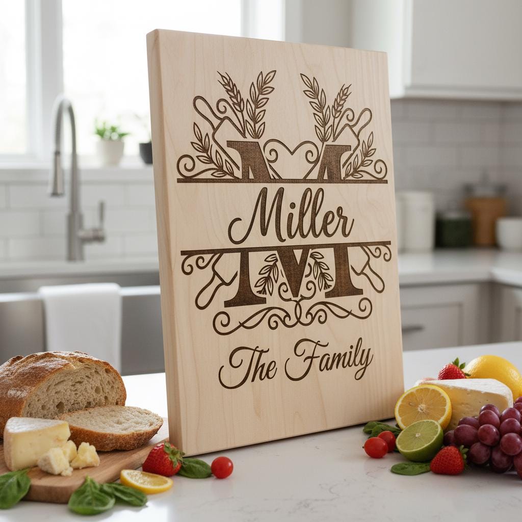 Feiern Sie die kulinarischen Traditionen Ihrer Familie mit unserem Gravurdatei-Bundle, das dazu gedacht ist, jeder Küche eine persönliche Note zu verleihen. Jedes individuelle Monogramm verwandelt gewöhnliche Bretter in geschätzte Erbstücke, perfekt zum Verschenken oder um Ihr eigenes Zuhause aufzuwerten.
