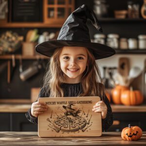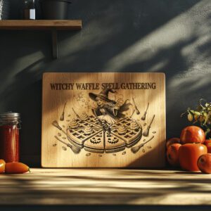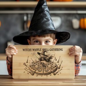 Erhöhen Sie Ihre gruseligen Zusammenkünfte mit unserer Halloween Gravur Laserdatei, entworfen für alle gängigen Lasermaschinen wie Lightburn und Glowforge. Dieses einzigartige Hexenwaffel-Zauberspruch-Charcuterie-Brett bringt magischen Charme und festliches Flair in Ihre Snackpräsentation.