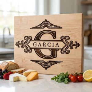 Verwandeln Sie gewöhnliche Bretter in Erinnerungsstücke, die Tradition und Eleganz ehren. Bereiten Sie Ihren Liebsten eine besondere Freude mit einem individuellen Logo, das dazu geschaffen wurde, ein geliebtes Herzstück in jeder Küche oder jedem Essbereich zu werden.