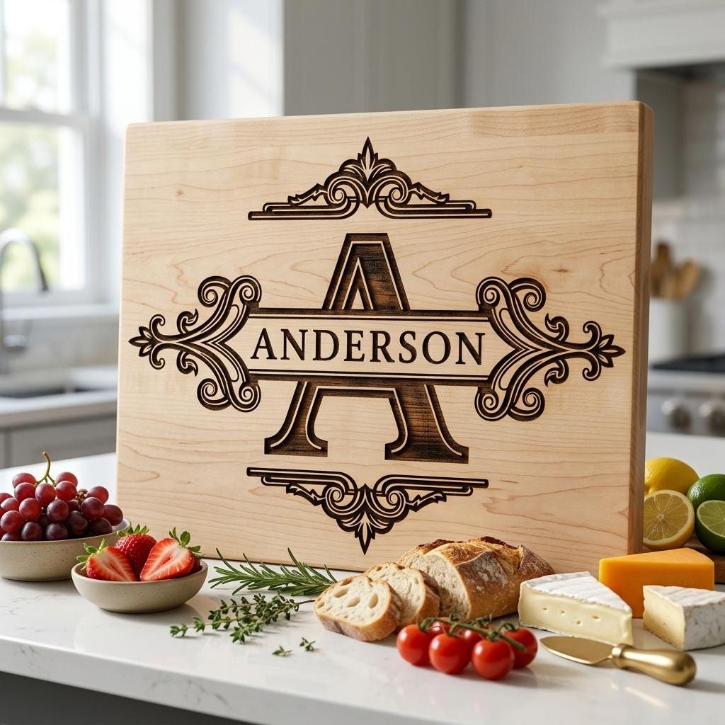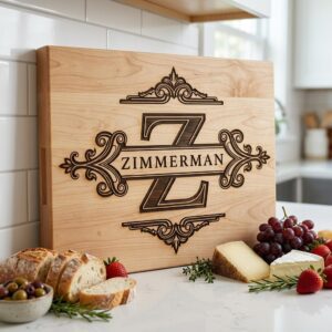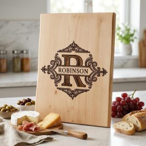 Verwandeln Sie gewöhnliche Bretter in Erinnerungsstücke, die Tradition und Eleganz ehren. Bereiten Sie Ihren Liebsten eine besondere Freude mit einem individuellen Logo, das dazu geschaffen wurde, ein geliebtes Herzstück in jeder Küche oder jedem Essbereich zu werden.