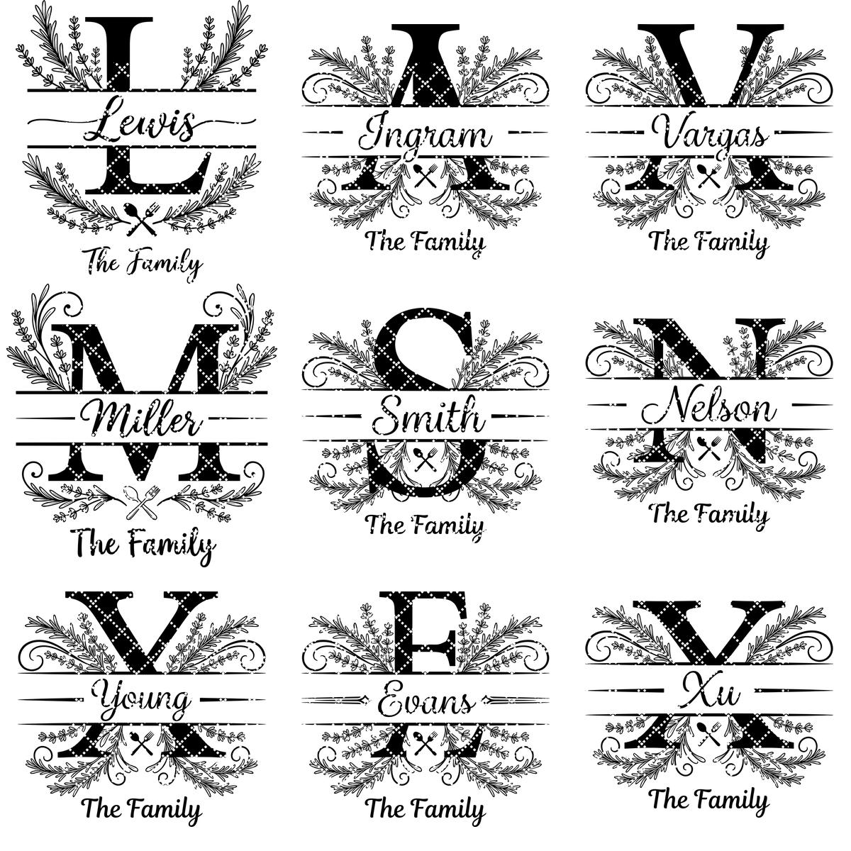**HINWEIS:** Dieses Paket enthält alle 26 Buchstaben des Alphabets, wobei Bilder jedes Buchstabens in den Produktfotos aufgeführt sind. Dieses Paket enthält keine Schriftdateien. Sie können alte Nachnamen löschen und neue mit Ihren eigenen Schriftarten hinzufügen.
