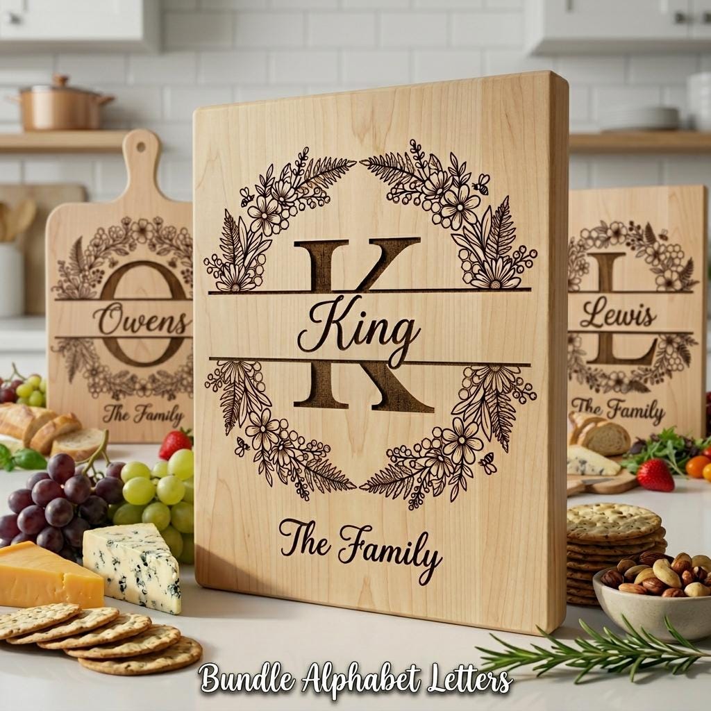 Erfreuen Sie Ihre Lieben oder Kunden mit wunderschön personalisierten Stücken. Diese detaillierten Blumen- und Alphabetgravuren verwandeln jedes Brett in einen Blickfang, ideal für Einweihungsfeiern, Hochzeiten oder jeden besonderen Anlass. Veredeln Sie Ihre Gravurprojekte noch heute und beeindrucken Sie mit personalisierten, bleibenden Eindrücken.