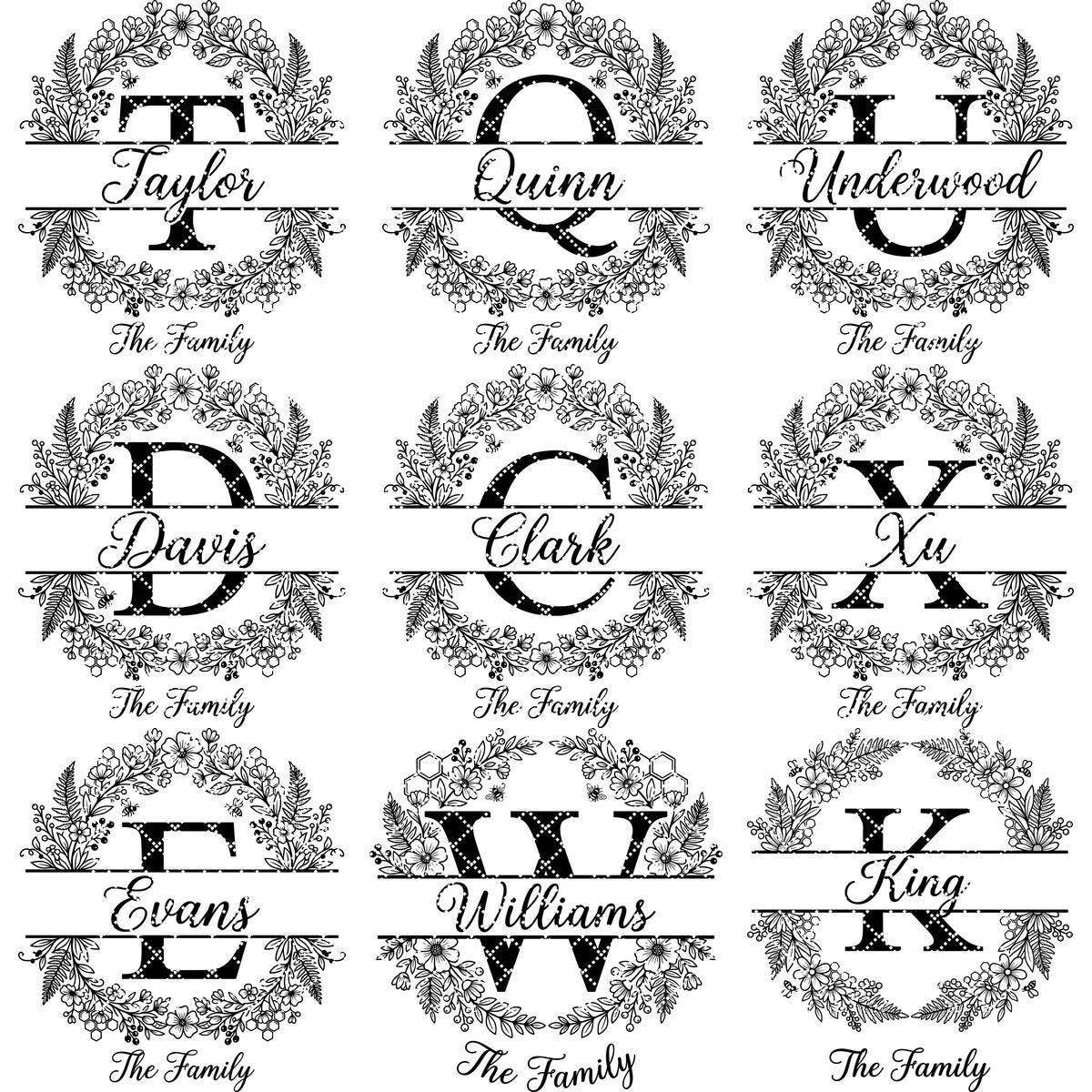 **HINWEIS:** Dieses Paket enthält alle 26 Buchstaben des Alphabets, mit Bildern jedes Buchstabens, die in den Produktfotos aufgeführt sind. Dieses Paket enthält keine Schriftdateien. Sie können alte Nachnamen löschen und neue mit Ihren eigenen Schriftarten hinzufügen.
