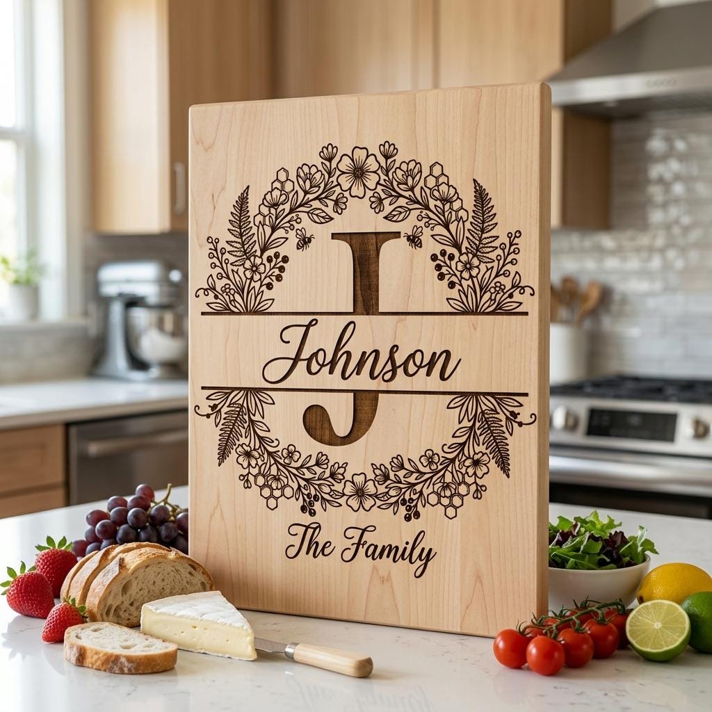 Verwandeln Sie gewöhnliche Küchenkreationen in unvergessliche Geschenke mit unserem Wildflower Bee Gravurdateien-Paket. Jedes Design beinhaltet aufwendige Blumenkunst, lebendige Bienen und eine elegante Monogramm-Option für Ihren Familiennamen, die jedem Projekt personalisierten Charme verleiht.