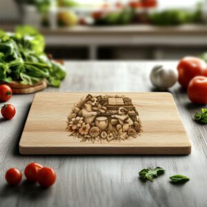 Verwandeln Sie Ihre Küchendekoration mit diesem einzigartigen, gravierten Meisterwerk. Ideal zum Verschenken oder zur Personalisierung Ihres Raumes. Dieses Design vereint Kunst und Charme und verwandelt alltägliche Momente in unvergessliche Erlebnisse. Verpassen Sie es nicht – machen Sie Ihre Küche noch heute zu etwas ganz Besonderem!