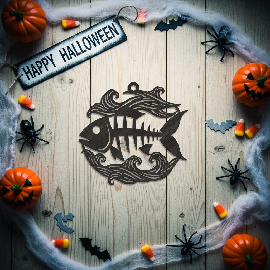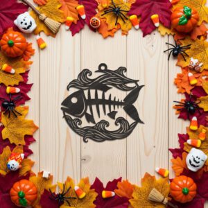 Eleva tu decoración de Halloween con nuestro arte láser de esqueleto de pez, perfecto para fantasmas marineros y ambientes espeluznantes.
