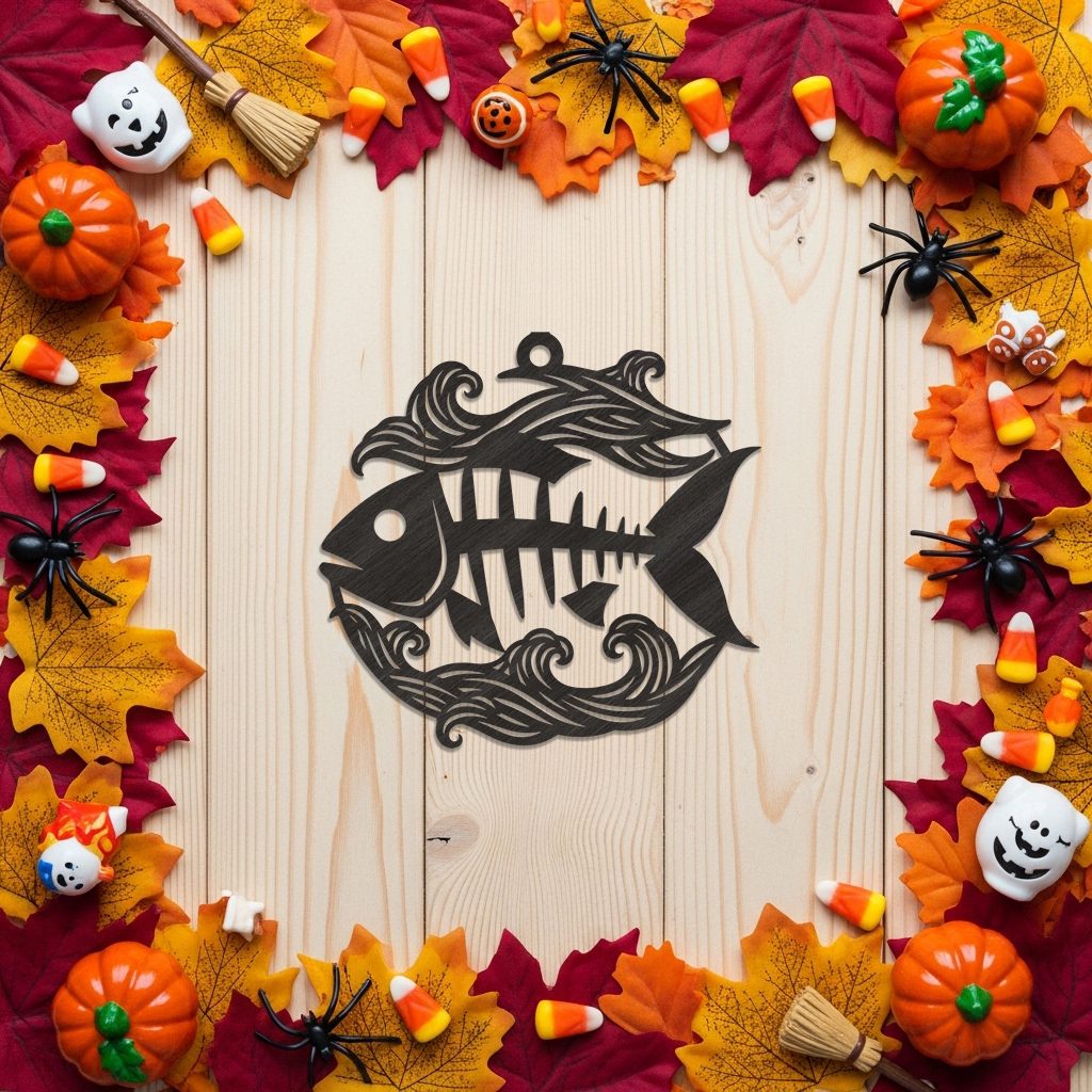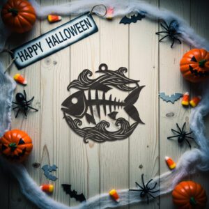 Adorno de Halloween con Esqueleto de Pez, Archivo Digital para Decoración Costera Espeluznante.