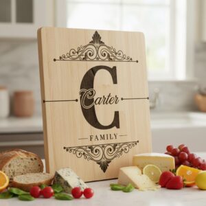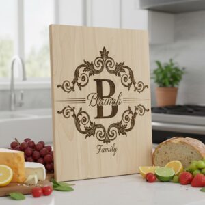 Celebra la herencia familiar con nuestro archivo personalizado de Monograma Familiar, ideal para crear elegantes tablas de embutidos. Este diseño transforma tablas ordinarias en preciados recuerdos, perfecto para conmemorar ocasiones memorables.