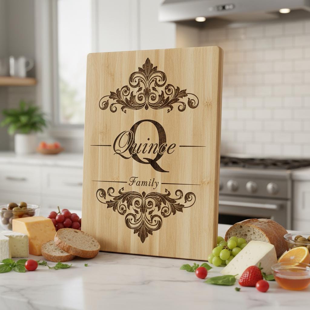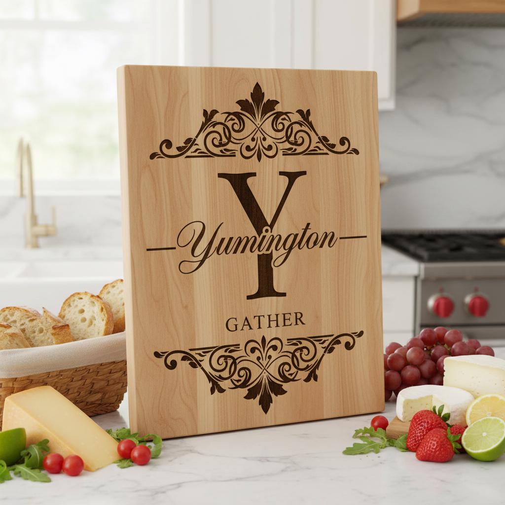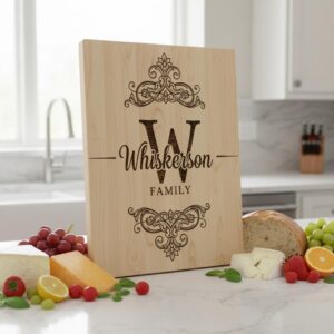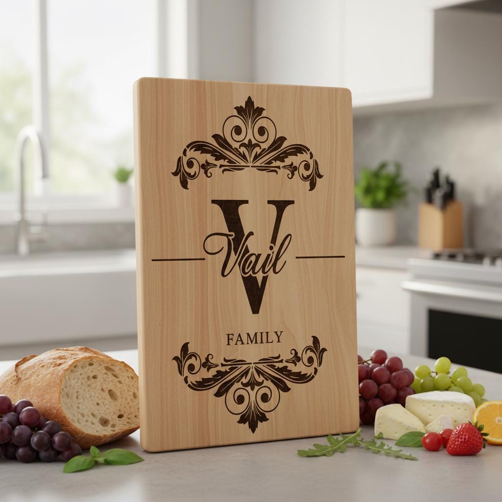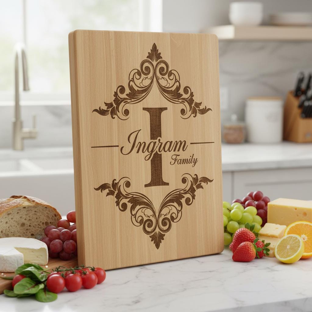 Celebra la herencia familiar con nuestro archivo personalizado de Monograma Familiar, ideal para crear elegantes tablas de embutidos. Este diseño transforma tablas ordinarias en preciados recuerdos, perfecto para conmemorar ocasiones memorables.