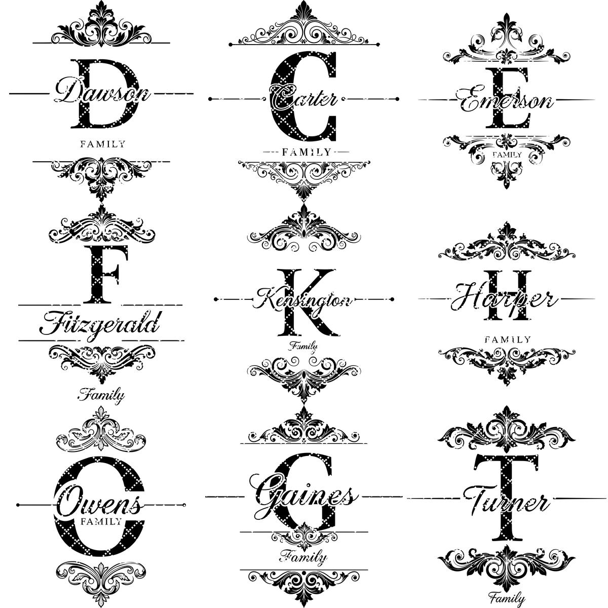 **NOTA:** Este paquete incluye las 26 letras del abecedario, con imágenes de cada letra mostradas en las fotos del producto. Este paquete no incluye archivos de fuente. Puedes eliminar apellidos antiguos y añadir nuevos usando tus propias fuentes.
