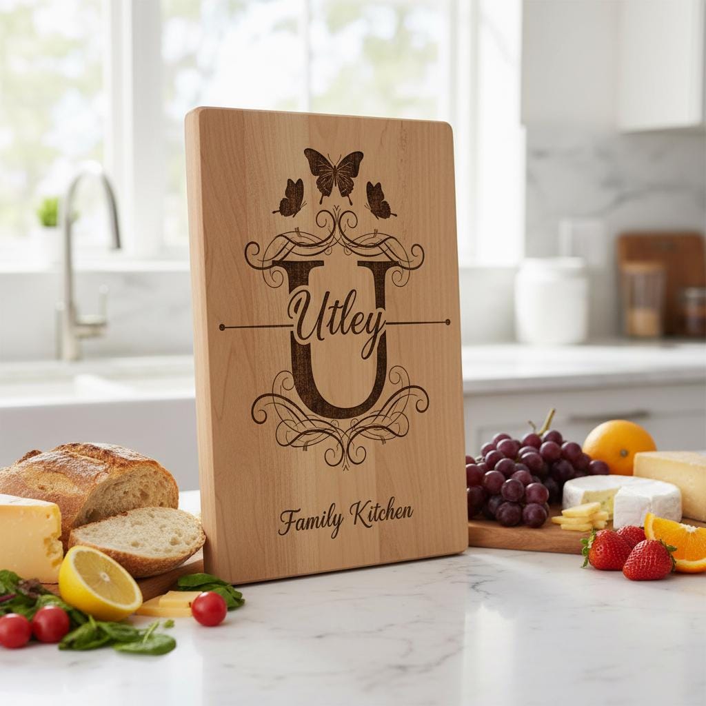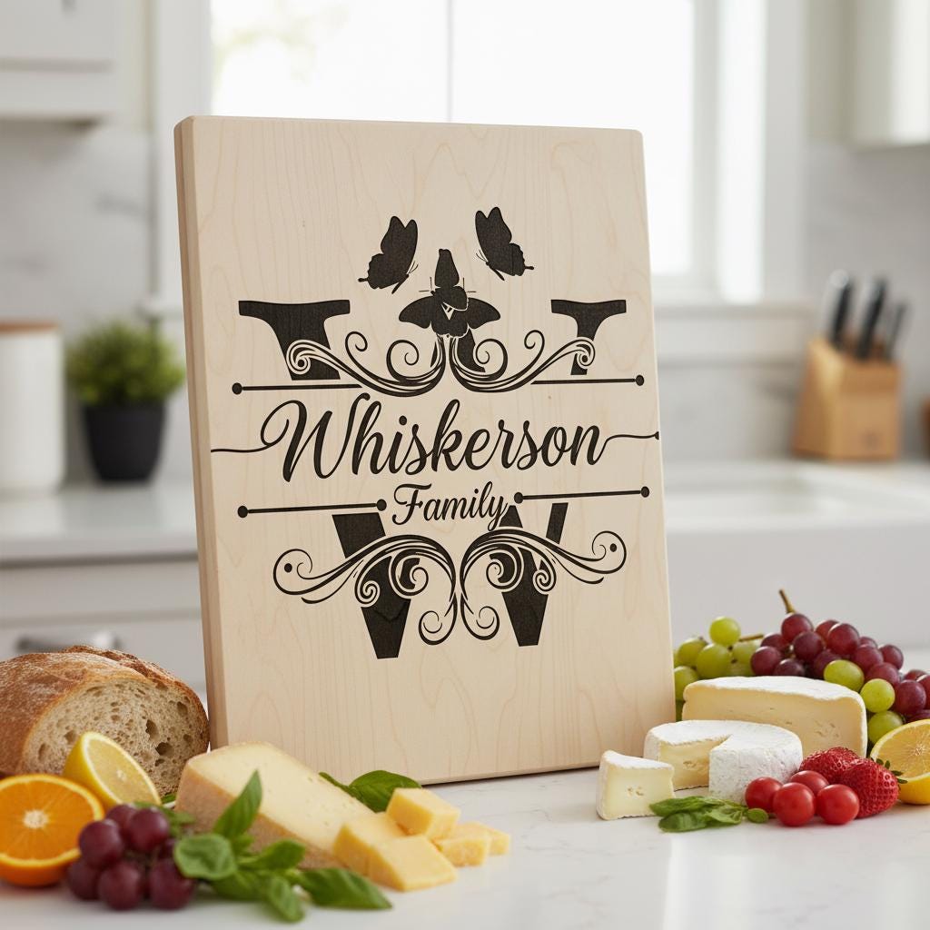Eleva la decoración de tu cocina con nuestro archivo de grabado para charcutería de granja con monograma, diseñado para añadir un toque personalizado a cualquier tabla de madera. Perfecto para crear regalos únicos y elegantes o para realzar tu propio espacio con elegancia rústica.