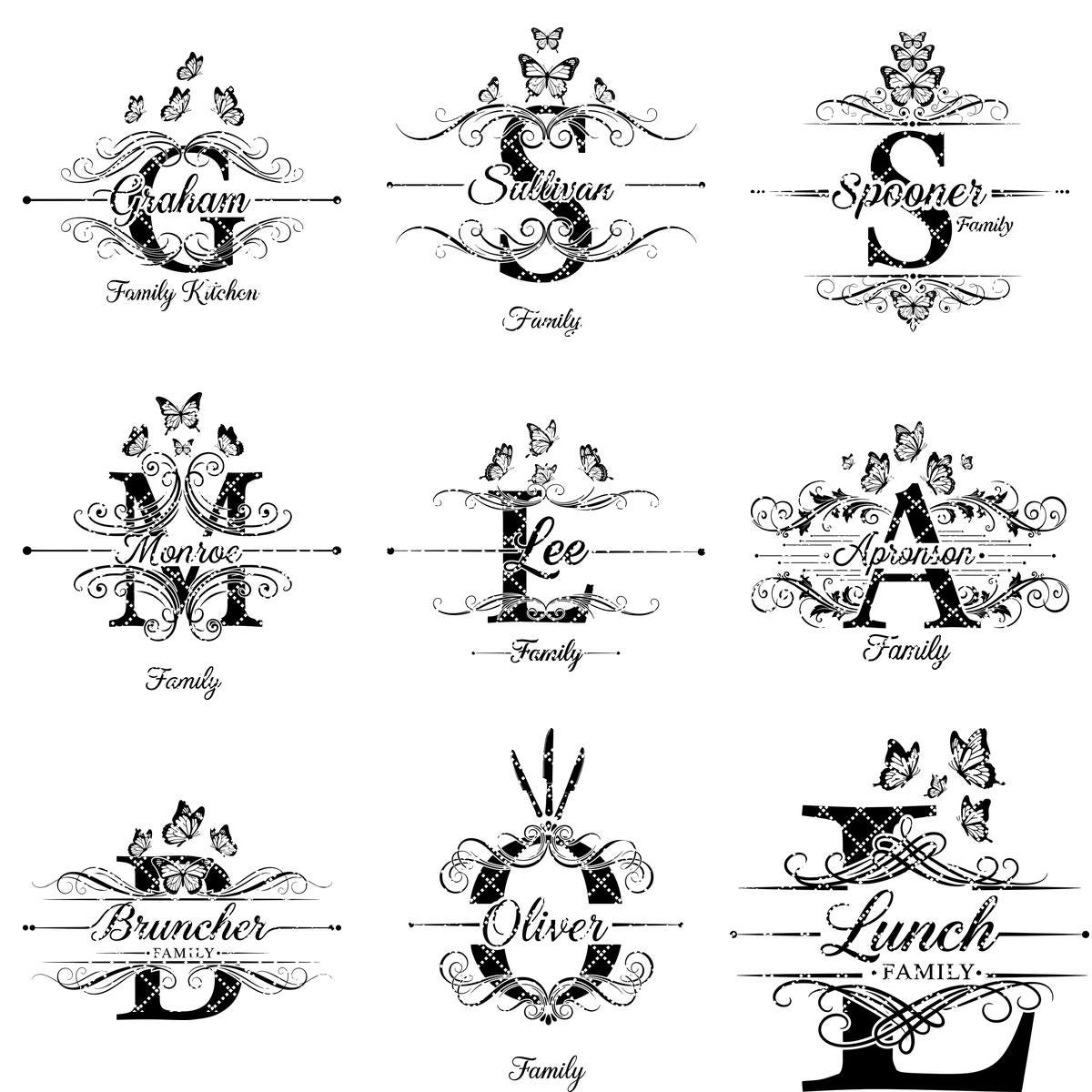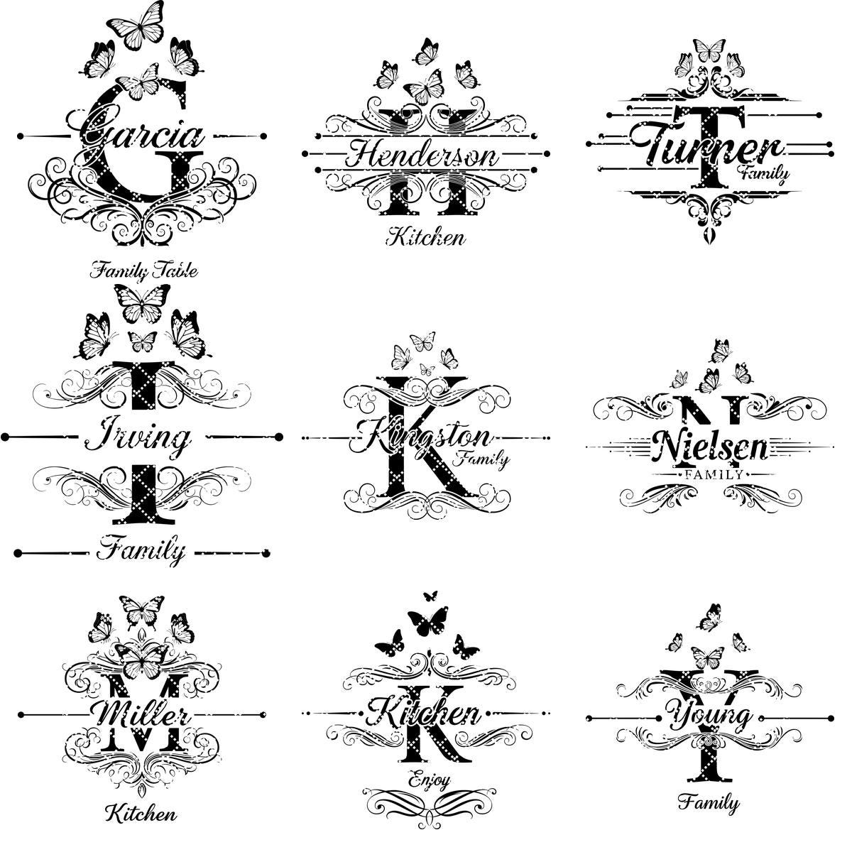 **NOTA:** Este paquete incluye las 26 letras del alfabeto, con imágenes de cada letra listadas en las fotos del producto. Este paquete no incluye archivos de fuentes. Puedes eliminar apellidos antiguos y añadir nuevos utilizando tus propias fuentes.