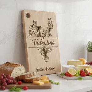 Eleva tu cocina con este diseño de tabla de charcutería monograma bellamente elaborado. Perfecto para personalizar tablas con nombres familiares, añade un toque vintage y elegante a tus presentaciones de comida. Elaborado con intrincados detalles de grabado, este archivo es ideal para crear recuerdos atemporales.