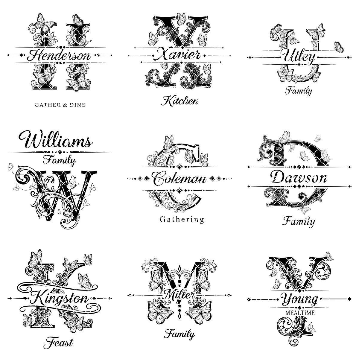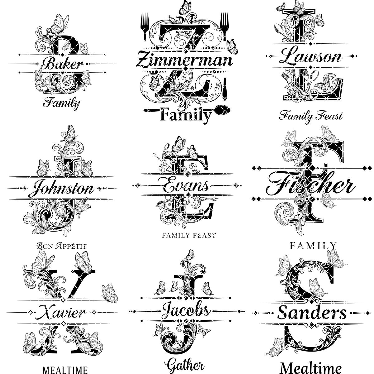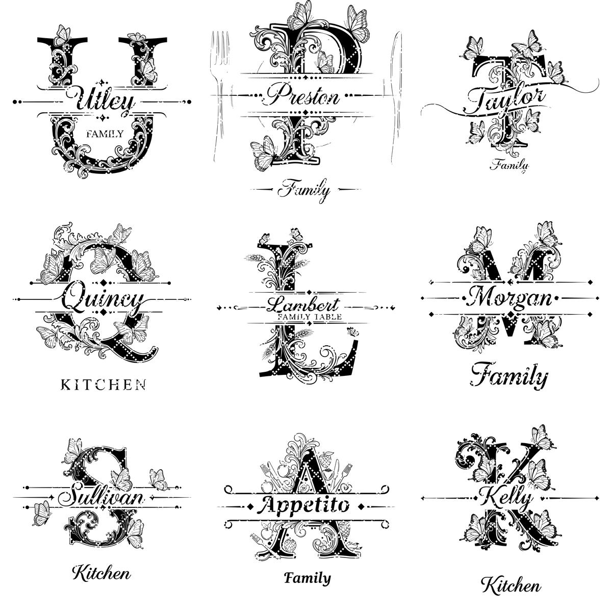 **NOTA:** Este paquete incluye las 26 letras del alfabeto, con imágenes de cada letra mostradas en las fotos del producto. Este paquete no incluye archivos de fuente. Puede eliminar apellidos antiguos y añadir nuevos usando sus propias fuentes.