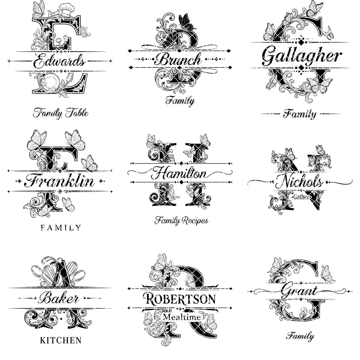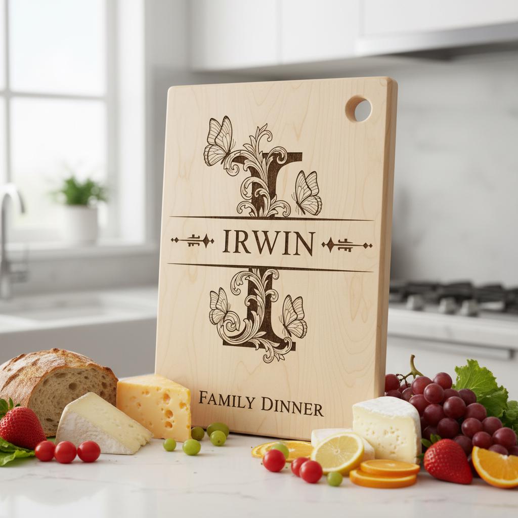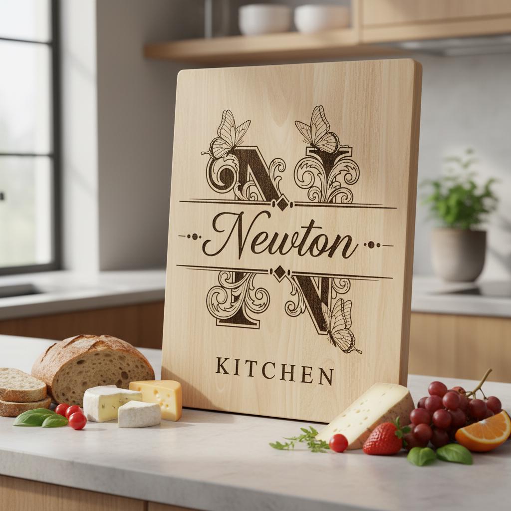 Eleva tu cocina con este diseño de tabla de charcutería monograma bellamente elaborado. Perfecto para personalizar tablas con nombres familiares, añade un toque vintage y elegante a tus presentaciones de comida. Elaborado con intrincados detalles de grabado, este archivo es ideal para crear recuerdos atemporales.