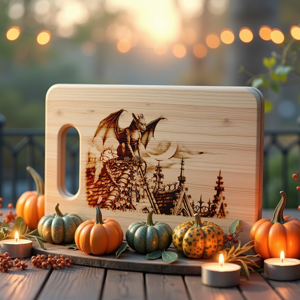 Desata un toque de encanto gótico este Halloween con nuestro exclusivo archivo de grabado láser de Gárgola. Perfecto para realzar tu decoración de temporada, este diseño único aporta un aire de misterio y elegancia a cualquier tabla de embutidos.