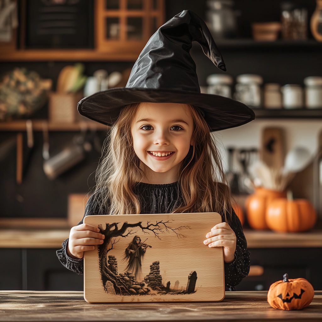 Libera el encanto espeluznante de Halloween con nuestro archivo de grabado láser del Violinista Embrujado. Este llamativo diseño transforma instantáneamente cualquier tabla de embutidos en una obra maestra gótica, perfecta para reuniones espeluznantes o decoración llamativa durante todo el año.