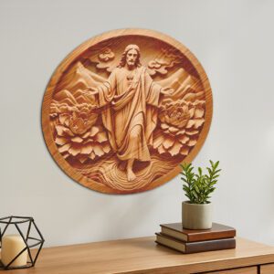 Eleva tu espacio con nuestro impresionante archivo de grabado láser de Ilusión 3D de Jesús, diseñado para inspirar y edificar. Esta exclusiva obra de arte religiosa para pared exhibe a Jesús dentro de un elegante marco circular, añadiendo un toque significativo a cualquier hogar cristiano.