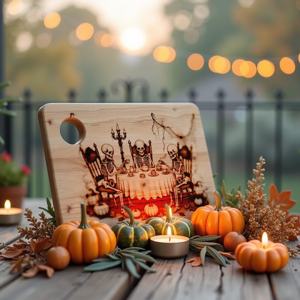 Eleva tus celebraciones de Halloween con nuestro diseño exclusivo de tabla de embutidos de fiesta de té de esqueletos, creado para los entusiastas del grabado láser. Este intrincado archivo aporta un encanto espeluznante a tu tabla de servir, haciendo que cada reunión sea inolvidable.