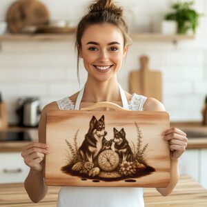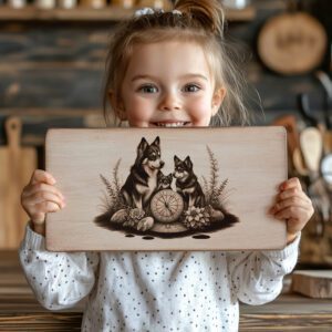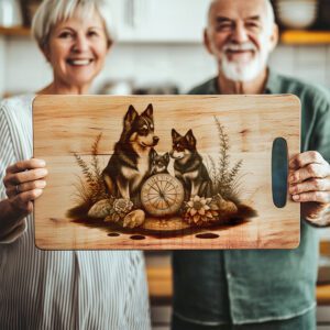 Eleva la decoración de tu cocina con nuestro archivo de grabado láser para tabla de charcutería, con un diseño único de una brújula familiar Husky. Este hermoso patrón añade instantáneamente un toque de personalidad y calidez a cualquier presentación de quesos.