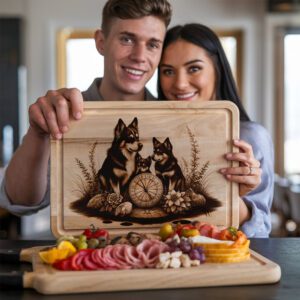 ¿Buscas un regalo memorable? Este diseño de tabla de charcutería personalizable es ideal para cumpleaños, bodas, inauguraciones de casas o amantes de los perros. Crea un recuerdo funcional que será atesorado y admirado durante años.