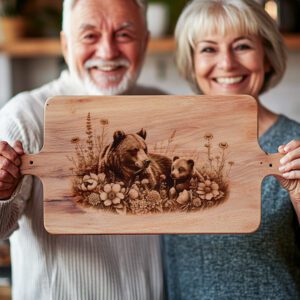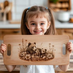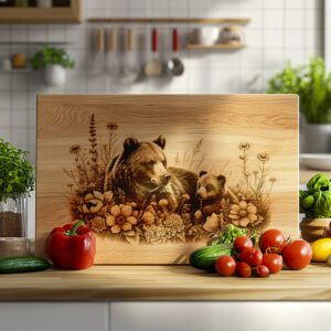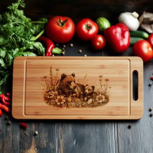 Eleva la decoración de tu cocina con nuestro Archivo de Grabado Láser para Tabla de Charcutería, con un encantador diseño floral de oso y osezno. Este patrón único aporta un toque de elegancia rústica campestre a tu experiencia gastronómica, haciendo que cada comida se sienta especial y acogedora.