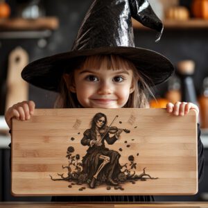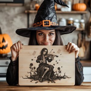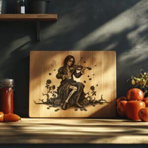 Transforma tu entretenimiento de Halloween con nuestro archivo de grabado láser para tabla de charcutería, que presenta el inquietante diseño del Violinista Maldito. Esta obra maestra gótica aporta un ambiente escalofriante a la decoración de tu cocina, perfecta para aquellos que aman un toque de lo macabro.