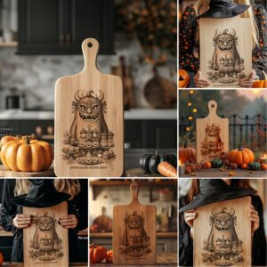 ¡Eleva tus festividades de Halloween con nuestro Paquete de Archivos de Grabado Láser para Tablas de Charcutería! Con seis diseños de tablas para servir hilarantes y espeluznantes, estos archivos añaden personalidad a cualquier surtido de fiesta y se convierten en temas de conversación instantáneos.