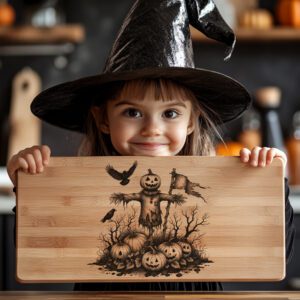 Transforma tu tabla de embutidos en una obra maestra festiva con nuestro archivo láser de grabado de Halloween. Con un cautivador diseño de calabaza espantapájaros embrujado, este archivo aporta un encanto espeluznante a cualquier reunión de temporada.