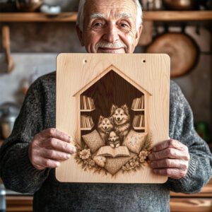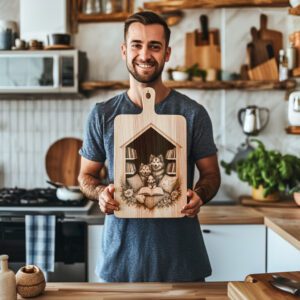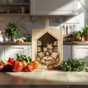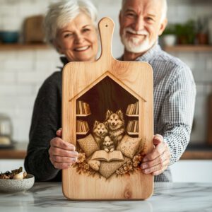 Eleva la decoración de tu cocina con nuestro archivo de grabado láser para tabla de embutidos, que presenta un conmovedor diseño de una Familia de Huskies Leyendo un Libro. Esta plantilla creativa transforma instantáneamente cualquier tabla en una pieza central memorable para reuniones y uso diario.