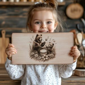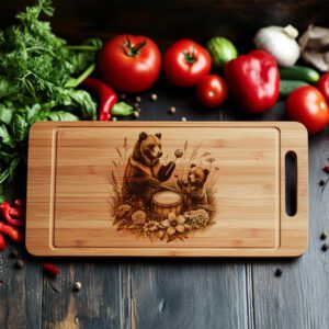 Transforma tu cocina con nuestro archivo de grabado láser para tabla de charcutería con una encantadora escena musical de osos en la naturaleza. Este diseño único añade un toque de elegancia artística a cualquier hogar, convirtiendo tu tabla en un verdadero tema de conversación.