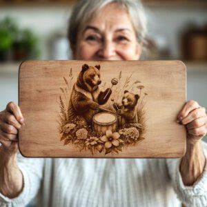 Sé el primero en valorar “Archivo de grabado para tabla de charcutería, Escena de naturaleza con oso y música, Decoración de cocina única.” Cancelar la respuesta