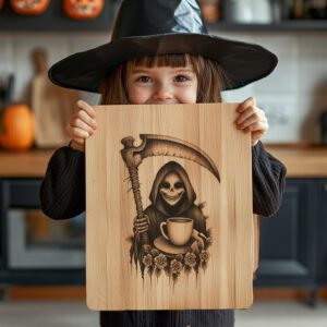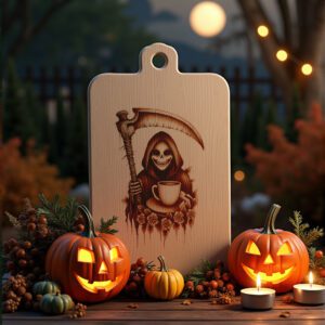 Desata una elegancia escalofriante en tu próxima reunión de Halloween con nuestro exclusivo Archivo de Grabado Láser para Tabla de Charcutería. Con un llamativo diseño híbrido de Parca con Paraguas, esta plantilla aporta un toque único a las decoraciones festivas de mesa.