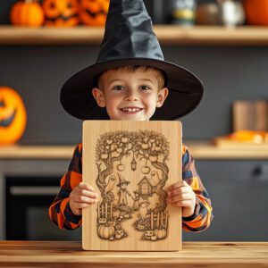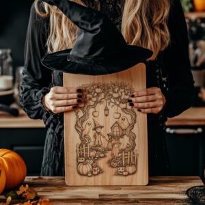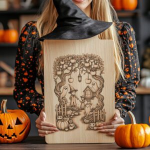 Perfecto para servir golosinas y mostrar tu espíritu de Halloween, esta tabla será el centro de atención de tus celebraciones de otoño. Haz que tu mesa sea inolvidable: ¡adquiere este diseño exclusivo hoy mismo y eleva tu entretenimiento de temporada!