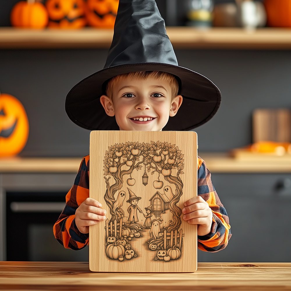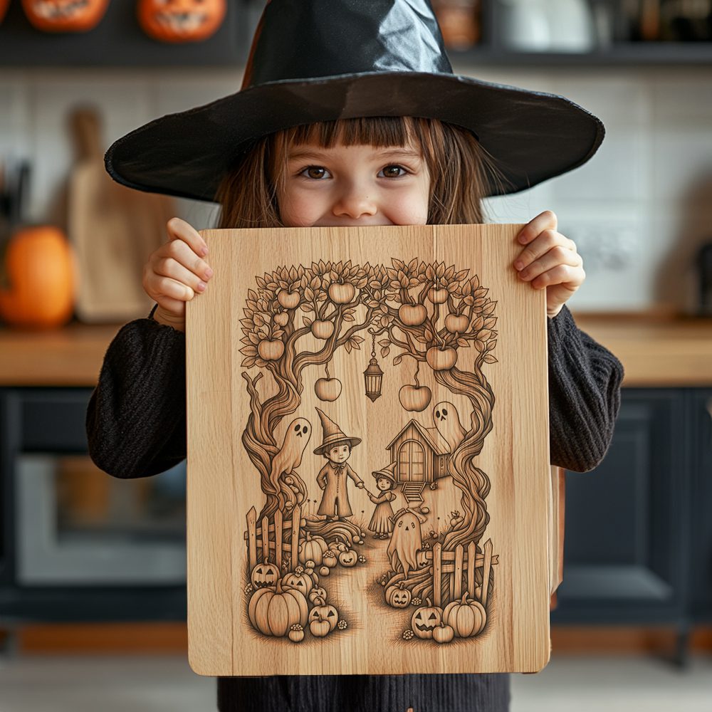¡Comienza tu fiesta de Halloween con nuestro diseño de tabla de charcutería «Huerto de Manzanas Acarameladas Retorcidas»! Este archivo láser único está creado para aportar un encanto espeluznante y un estilo festivo a tus reuniones.