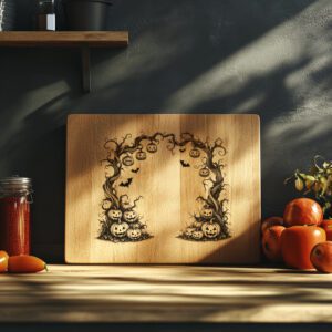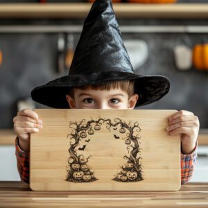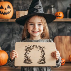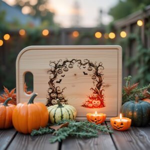 Eleva tus celebraciones espeluznantes con nuestro archivo láser para tabla de charcutería de Halloween, que presenta un diseño fascinante de arco de vid de linterna de bruja. Diseñado para un uso perfecto con tus grabadores láser favoritos, esta tabla para servir única se convertirá instantáneamente en la pieza central de tu festín festivo.