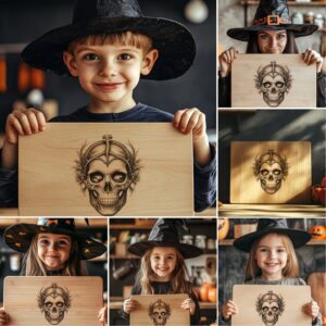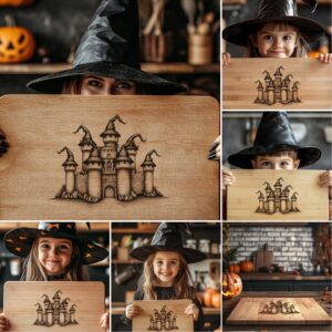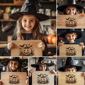 Eleva tus reuniones de Halloween con nuestros exclusivos archivos de grabado para tablas de embutidos, diseñados para infundir un toque espeluznante a tu estilo de servir. Cada diseño presenta encantadores motivos de brujas perfectos para fiestas temáticas o decoración otoñal.