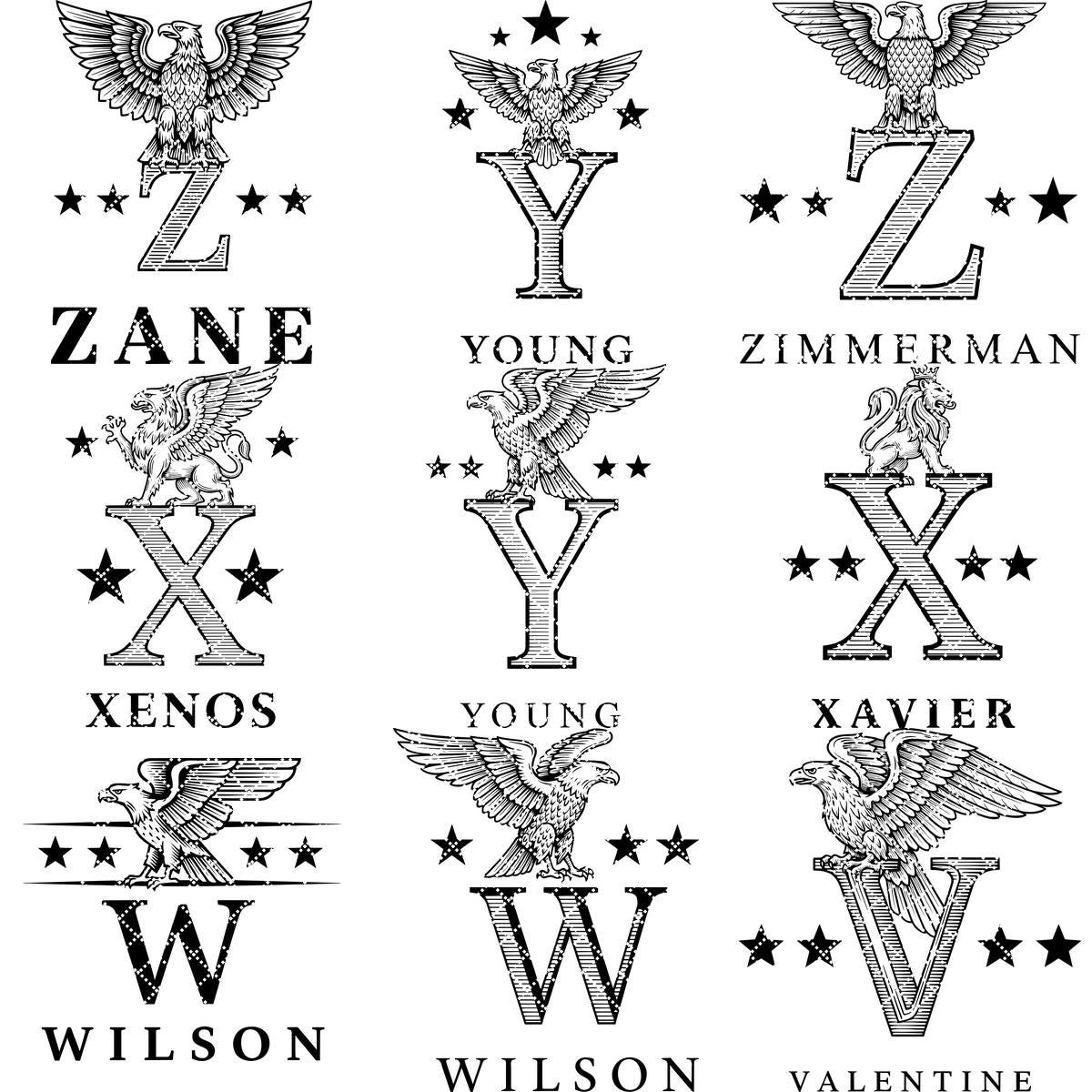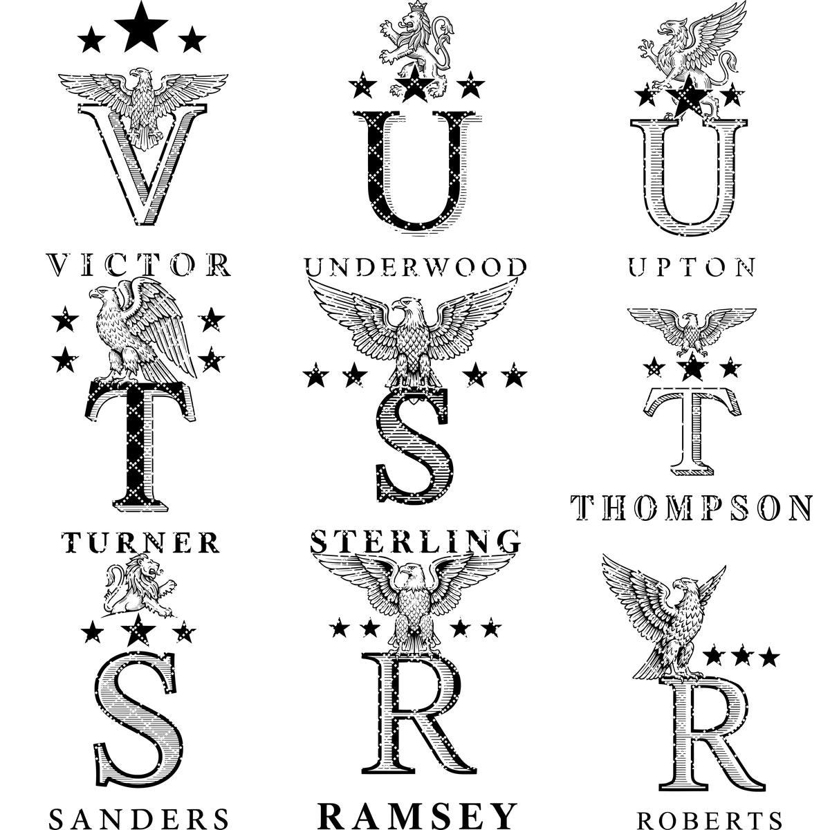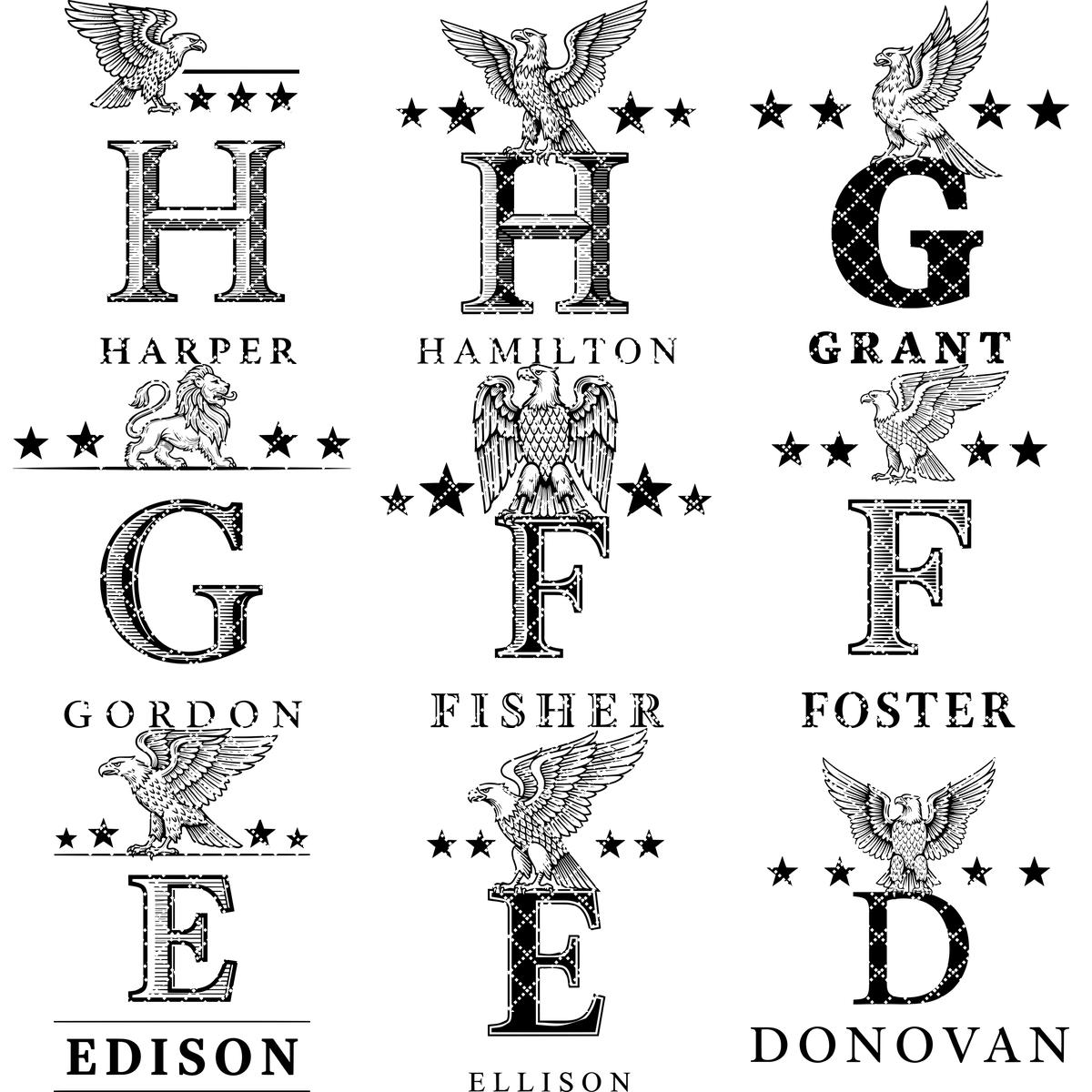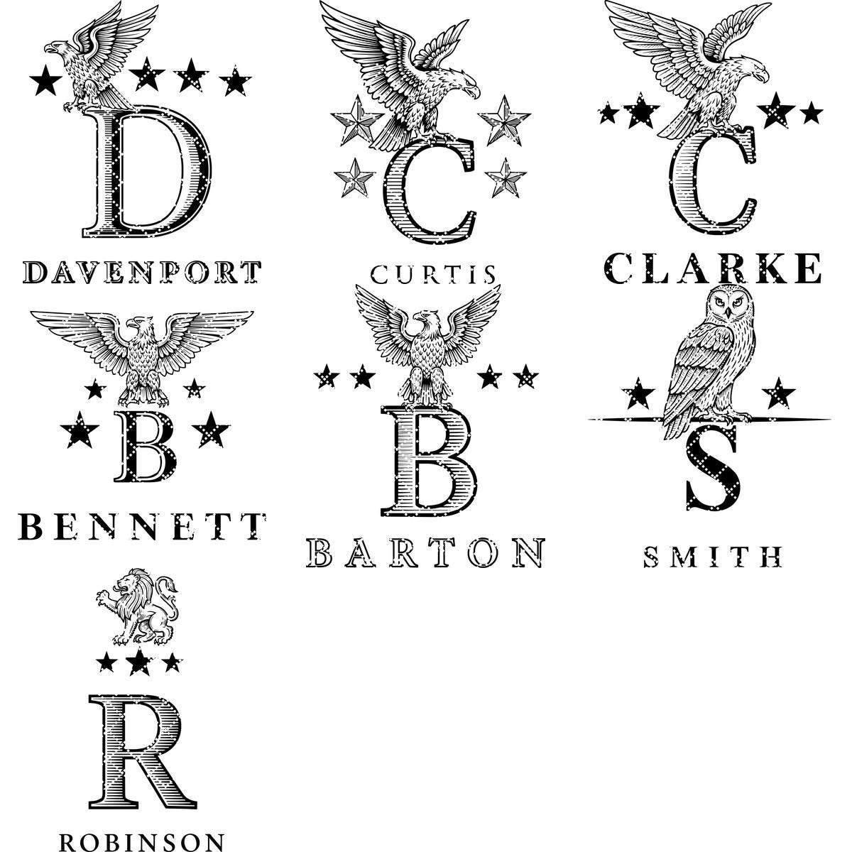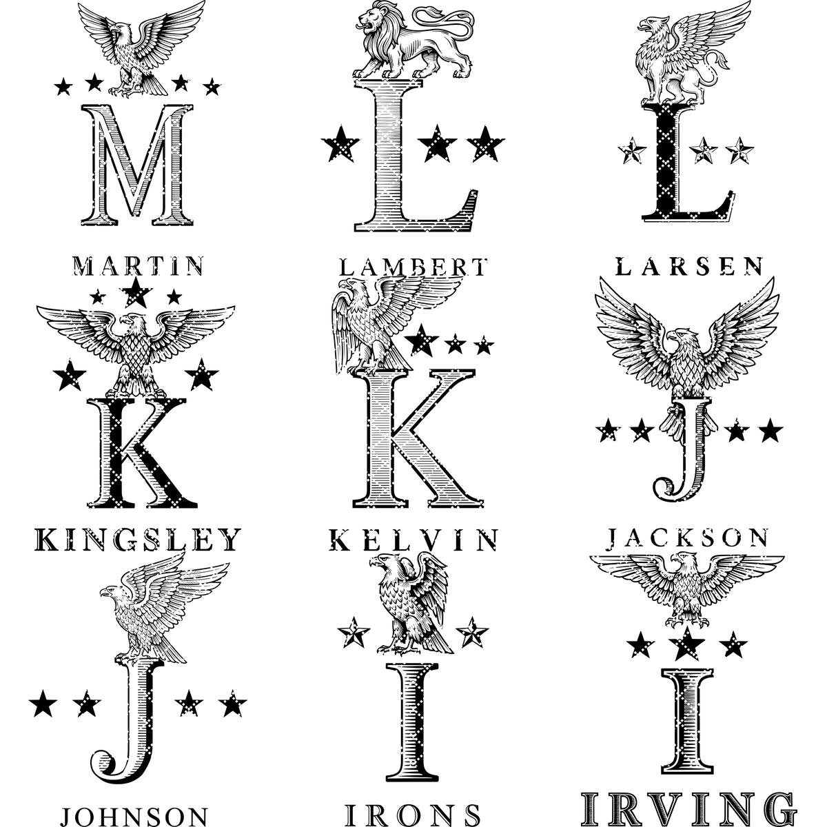 Transforme el nombre de su familia en una pieza central impresionante con este juego de Alfabeto Heráldico Monograma. Cada diseño irradia elegancia, mostrando nobles crestas de leones y detalles heráldicos clásicos, perfecto para añadir un toque de tradición a cualquier decoración.