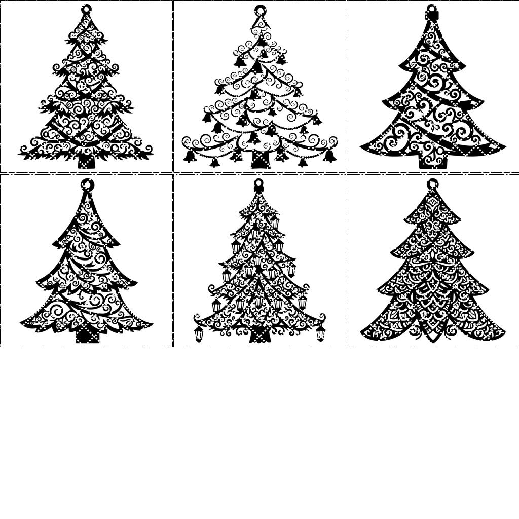 Juego de adornos navideños láser, 6 decoraciones de pino, archivo digital de Navidad.