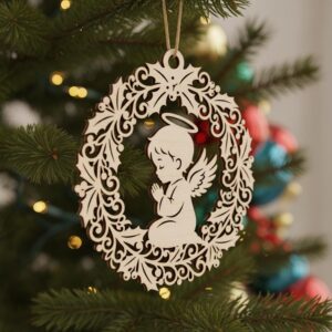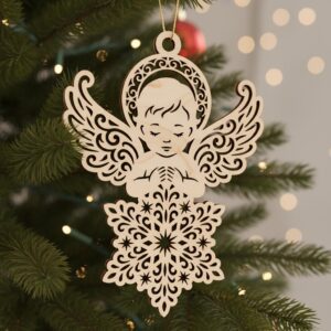 Paquete de Adornos de Ángel, Archivo de Corte Láser Navideño, 6 Adorables Diseños de Angelitos