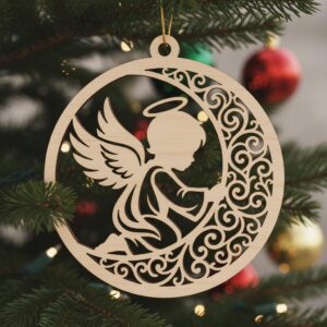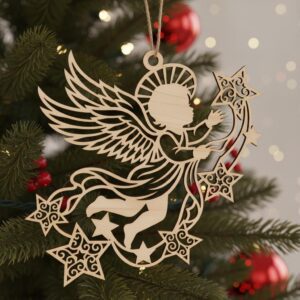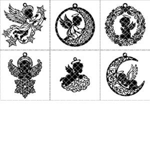 Paquete de Adornos de Ángel, Archivo de Corte Láser Navideño, 6 Adorables Diseños de Angelitos