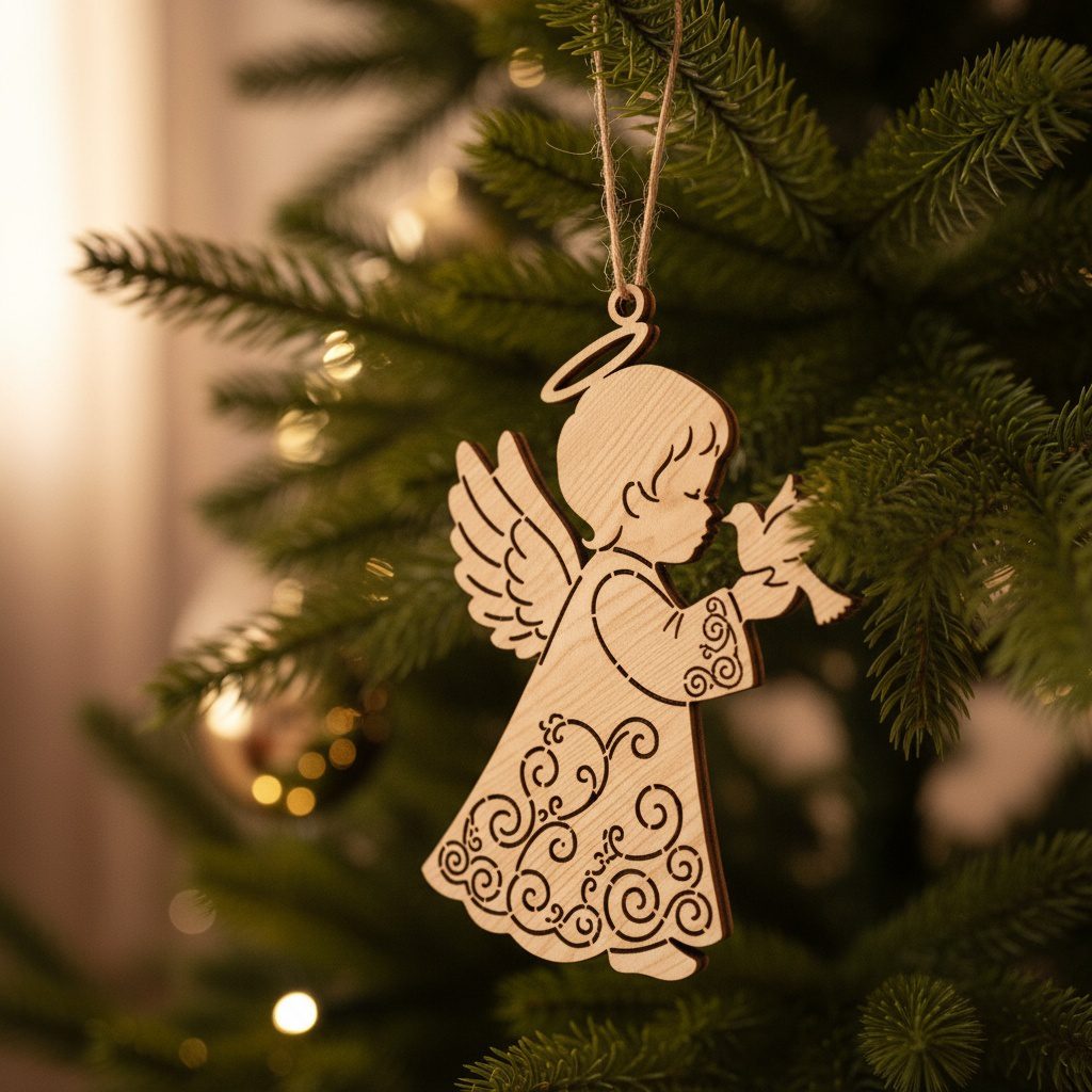 Paquete de adornos láser navideños, Juego de decoración para árbol de ángel, Decoraciones navideñas CNC