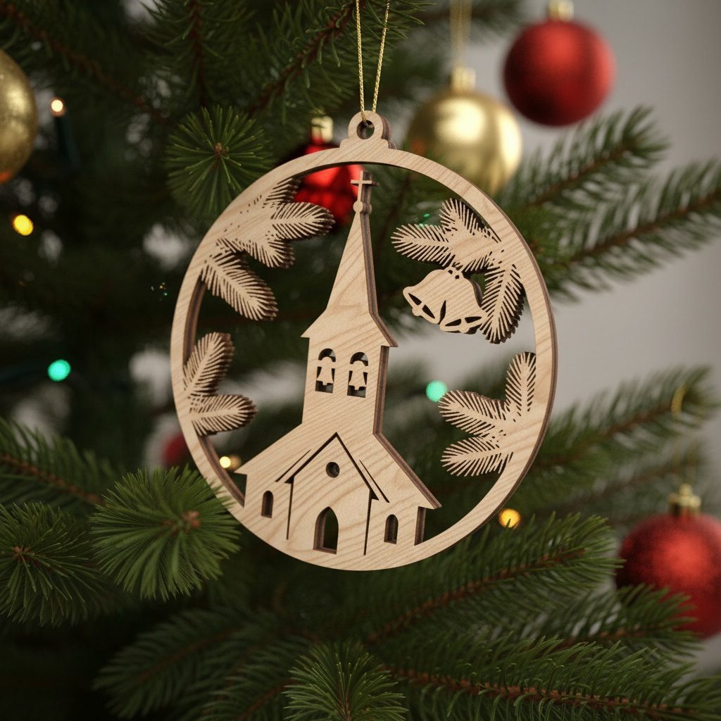 Paquete de adornos navideños de iglesia, Decoración religiosa para las fiestas, Descarga digital de arte láser