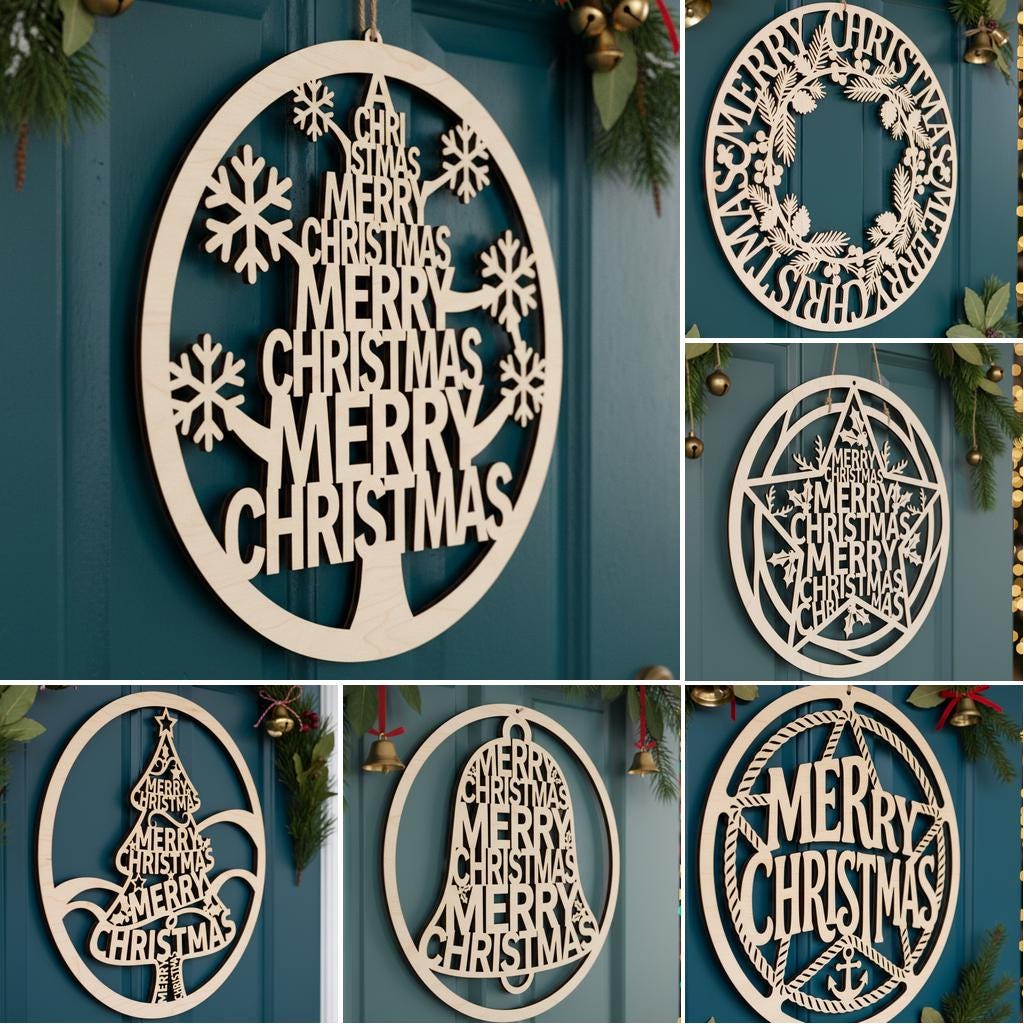¡Dale la bienvenida al espíritu festivo a tu hogar con nuestro Paquete de Adornos Navideños para Puerta! Transforma tu entrada en un alegre paraíso invernal con seis diseños encantadores, perfectos para exhibir tu alegría navideña en letreros redondos de madera.