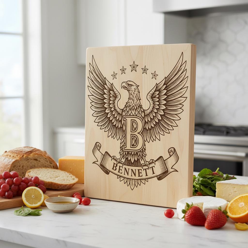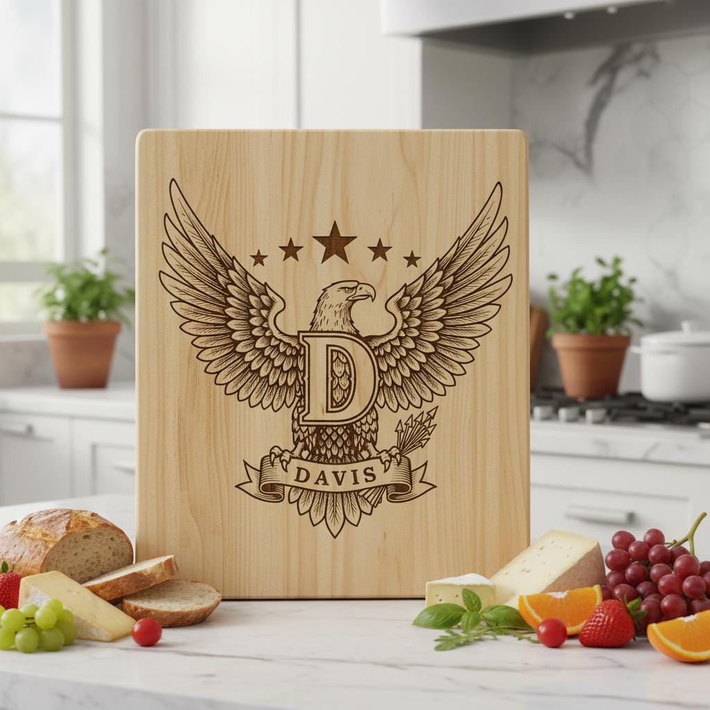Eleva tus creaciones para el hogar y regalos con nuestro Paquete de Monogramas Eagle Crest, que incluye 54 diseños exclusivos. Cada escudo está meticulosamente elaborado para mostrar el orgullo familiar y el espíritu americano atemporal, perfecto para tablas de embutidos, letreros con nombres y una llamativa decoración patriótica.